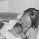 One of my legs was now up with the foot on the bottom of the pool and the other with the chin on the floor. I felt the urge to push and had both of my hands on my babies head. I held my hands as to welcome his with the next contraction but he didn’t turn, so in a quick moment which my midwife later told me was my intuition because he didn’t have enough room to move his shoulders, I stood up and with my hands on the rim of the pool I pushed just a little and he came. My husband and midwife stood behind me and caught him as he came out. I quickly sat back down and I had my baby in my arms. We did it. You and me and Daddy we went on this magical journey and welcomed you here. My midwife gave me and baby a towel to stay warm and then we got to know you. She quickly saw that you looked very well with an Apgar of 9 so there was no need to rub or suction or touch you in any way. We were just together and you didn’t cry. You came, immediately laid on my chest and knew that you weren’t away but with mama just on the other side. What a journey. We called our son into the living room and together we looked if we had a new brother or sister. It was a brother! We stayed in the pool and enjoyed and got to know one another. Daddy and brother were looking from the outside of the pool and baby and I enjoyed the water together.